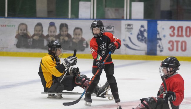 Накануне, в ледовом дворце «Спутник», прошла очередная совместная тренировка команды «Нефтяник-следж» и воспитанников спортивной школы «Нефтяник». На этот раз в гостях у особенных спортсменов побывали ребята 2014 и 2015 годов рождения.