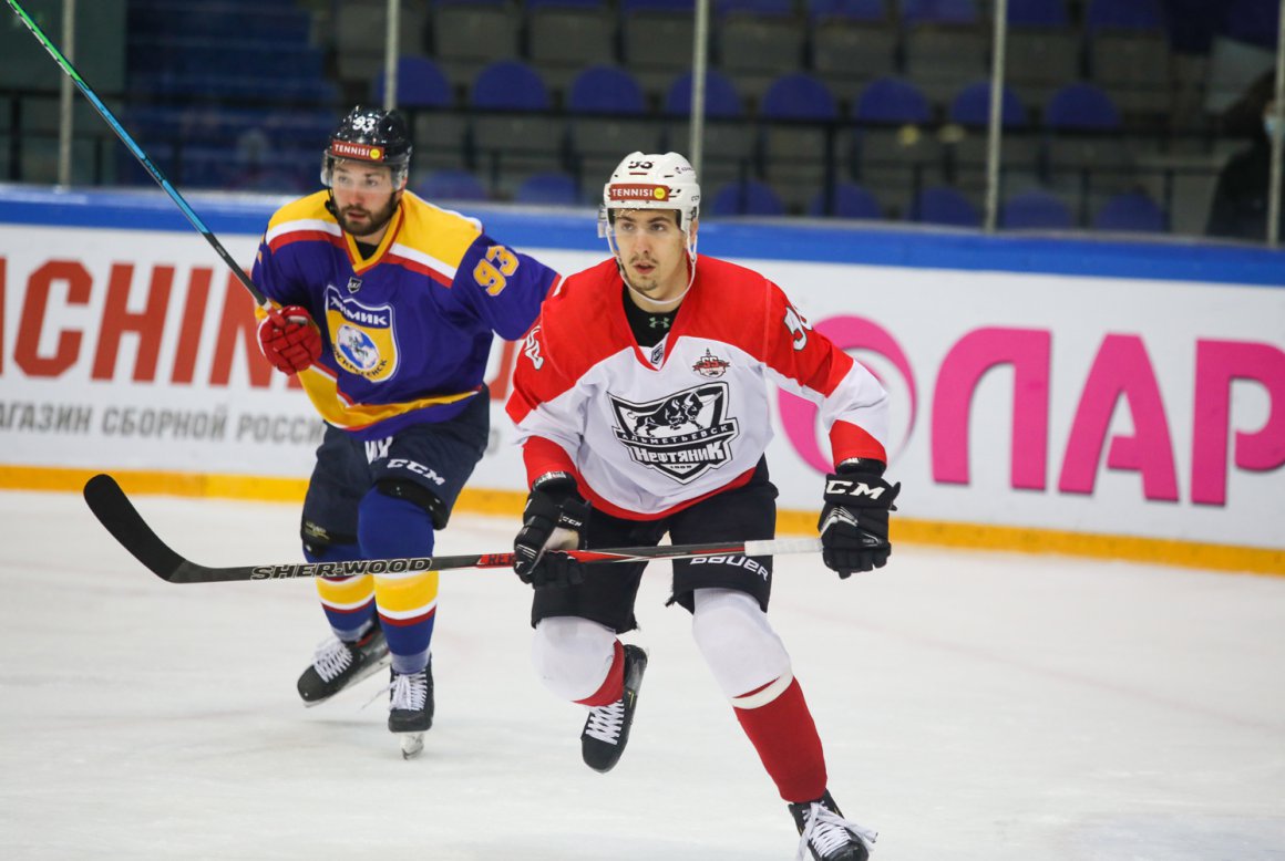 В заключительной трети матча еще одно большинство реализовала тройка Мокина и братьев Альшевских. И только в окончании игрового времени «Химик» организовал «шайбу престижа», лишив вратаря «Нефтяника» Аделя Минегалиева «сухаря».
