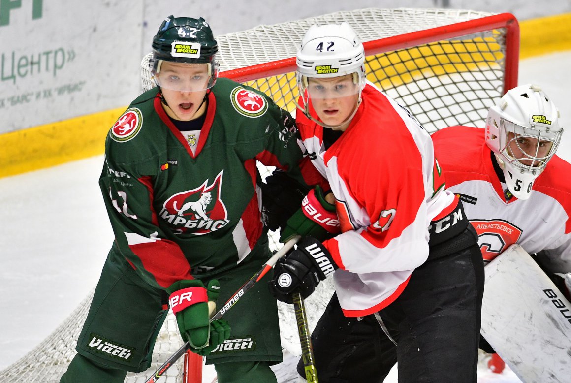 Но первый точный бросок при этом удался альметьевцам. На пятой минуте комбинацию Тимура Закирова и Данилы Куркова завершил Артур Резанов. Шайба, брошенная Артуром, срикошетила и взмыла вверх, после чего упала за спину вратарю «Ирбиса». Затем трижды, один раз в первом и дважды во втором периоде, забивали казанцы. Причем голы «Ирбиса» получались как под копирку: пас с одного фланга на другой и добивание в касание.