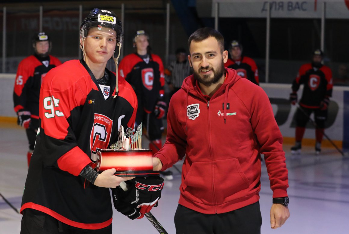 Нынешний сезон для альметьевской молодежной дружины знаковый – двадцать лет назад была создана ее прародительница команда «Нефтяник-2». Поэтому перед первым домашним матчем «Спутника» была проведена приятная церемония – командам был показан веселый ролик с участием клубного талисмана, а затем капитану «Спутника» юбилейный торт вручил капитан «Нефтяника» Динар Хамидуллин. В такой праздничный день молодежь просто не могла подкачать.