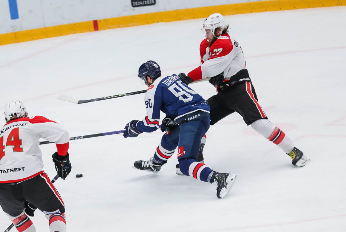 В третьем периоде «Нефтяник» вышел вперед. Максим Кориневский нашел пасом Ильдара Шиксатдарова, тот вошел в зону атаки и бросил низом – 1:2.