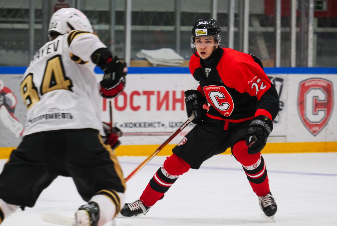 Не успела секундная стрелка сделать круг после вбрасывания шайбы, как счет уже был открыт. После броска омича Алексея Прокопенко шайба прошла выше ловушки Арслана Шигапова и угодила в ворота. Вели в счете гости совсем недолго. На третьей минуте хозяева «выстрелили дуплетом». Данила Семенов восстановил равенство, и через сорок девять секунд, с передачи Тимофея Окружнова, Рияз Галиев вывел «Спутник» вперед.